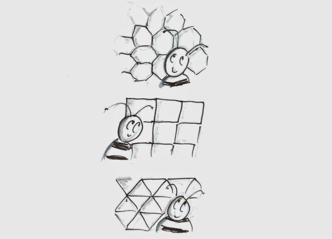 Ada tiga bentuk geometris yang sama dapat dibentuk secraa bersamaan, yakni segitiga sama sisi, bujur sangkar dan segi enam. Manakah yang terbaik?